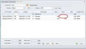 Untuk mengetahui kesalahan ini anda bisa dilihat pada kartu stok yang kolomnya tidak berisi angka atau (blank).